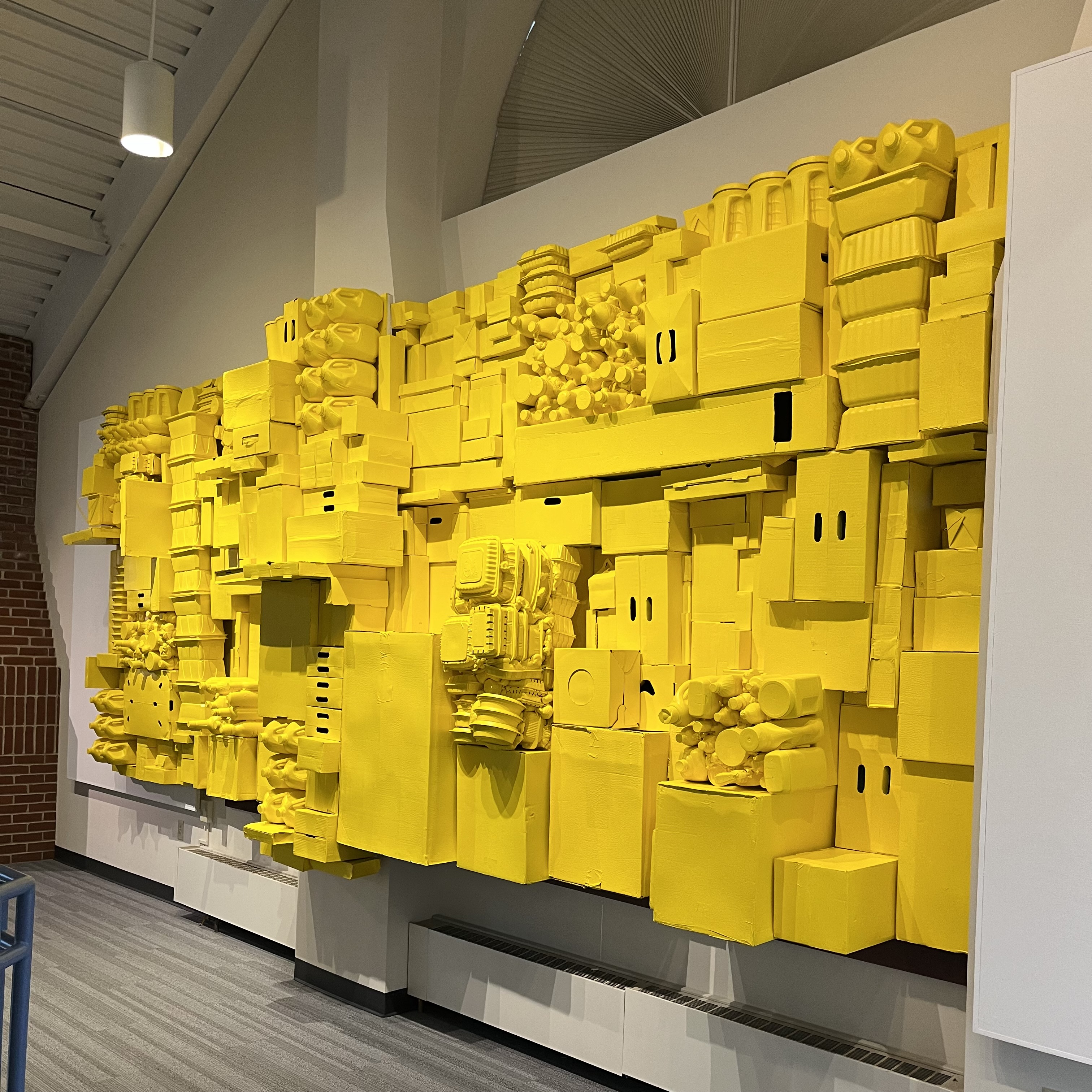The installation is a collection of packaging from store-purchased and ordered items over the span of one year. The artist began collecting just after the birth of her daughter, born during an Omicron variant spike in January 2022. As new parents navigating the pandemic, she and her husband chose to order more of their immediate needs to limit their exposure risks. This unintentional collection grew and took shape as their essentials evolved.