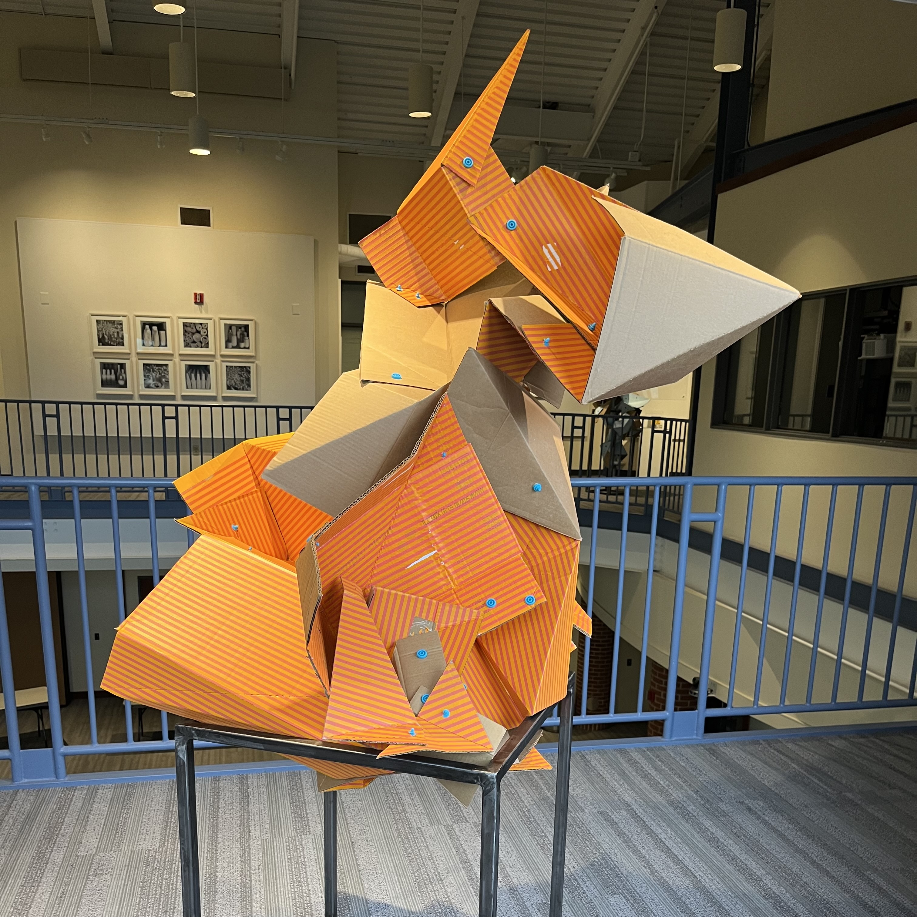Each piece is uniquely fabricated from a single month’s collection of cardboard, capturing a snapshot of that period. One side of each box is painted in stripes, emphasizing the importance of the items within, while the raw cardboard remains exposed on the other side. This dynamic interplay between the painted and natural surfaces symbolizes the equal significance of both the delivery and receipt of these packages. The sculptures illustrate how these seemingly mundane deliveries forged a vital bridge between people who might never have interacted otherwise, yet whose actions became essential in supporting each other’s existence during these unprecedented times.